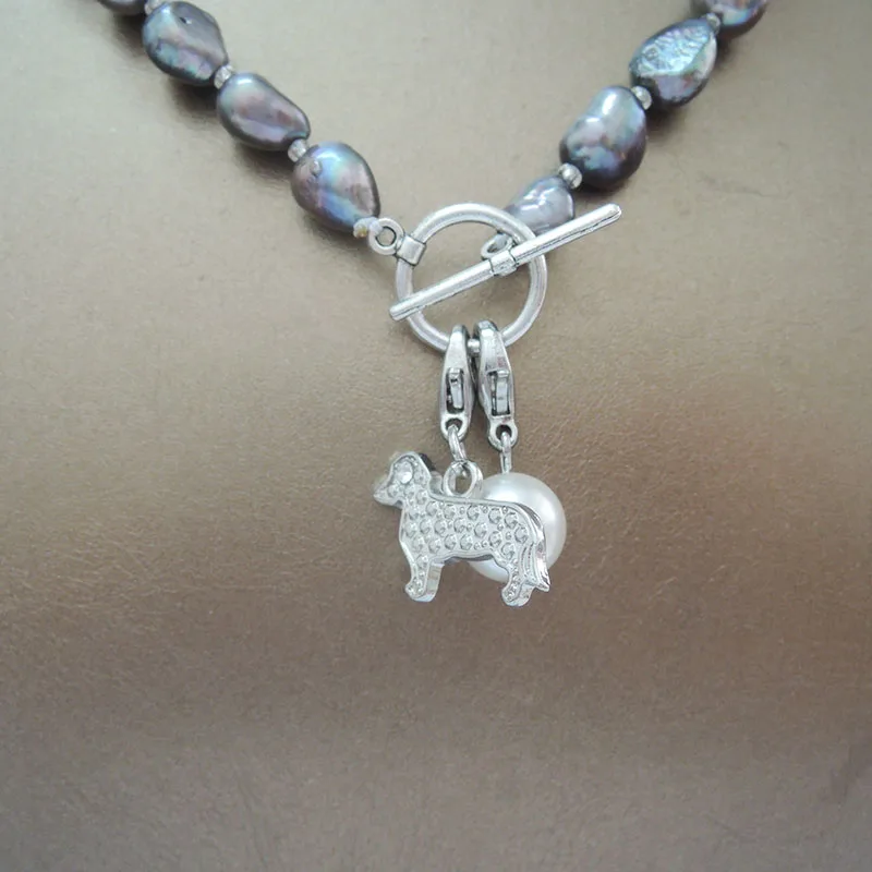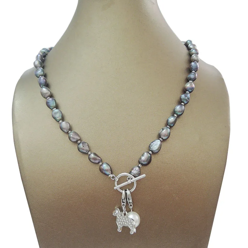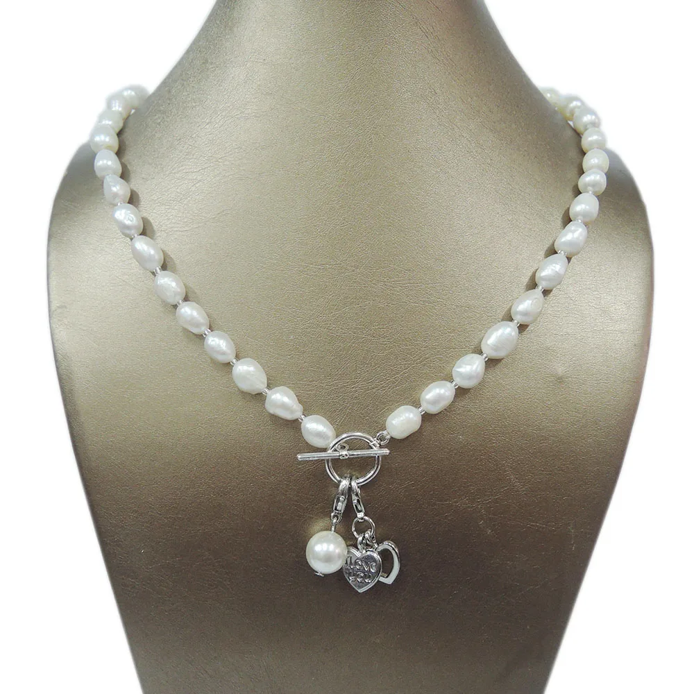 astounding 100% NATURE FRESHWATER PEARL NECKLACE long baroque pearl 7-9 mm.double heart.angelowlhorse pendantI
