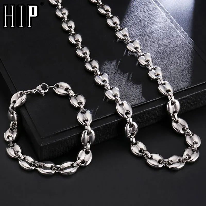 astounding HIP Hop Width 11MM Stainless Steel Gold Silver Coffee Beans Link Chain Necklace Chain Necklaces 316