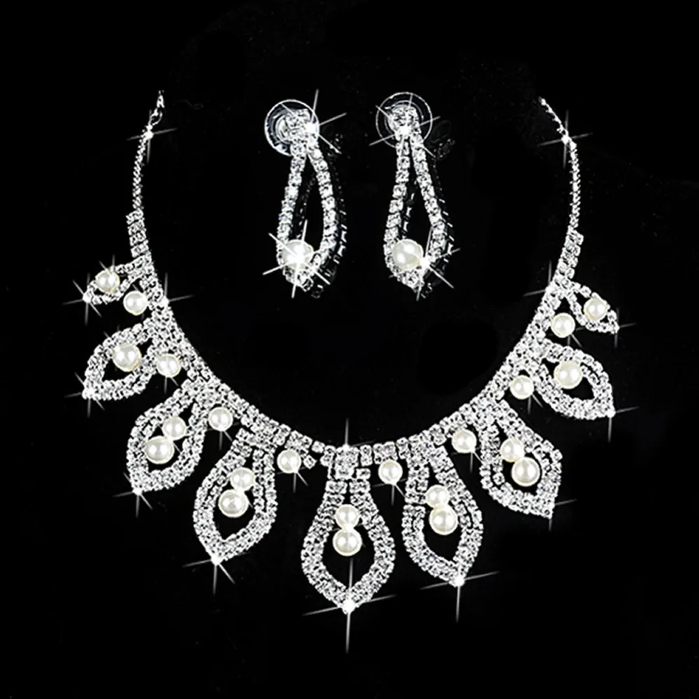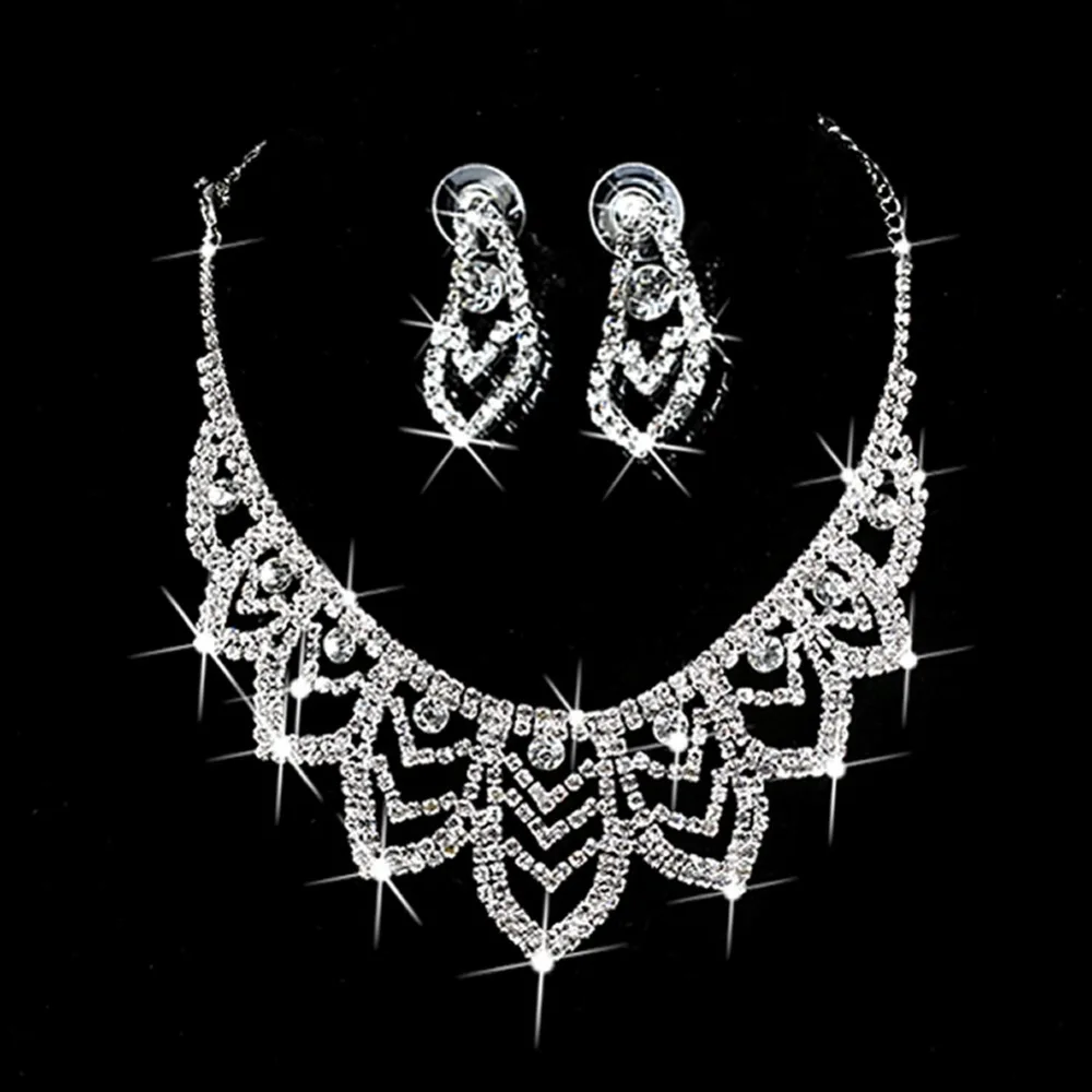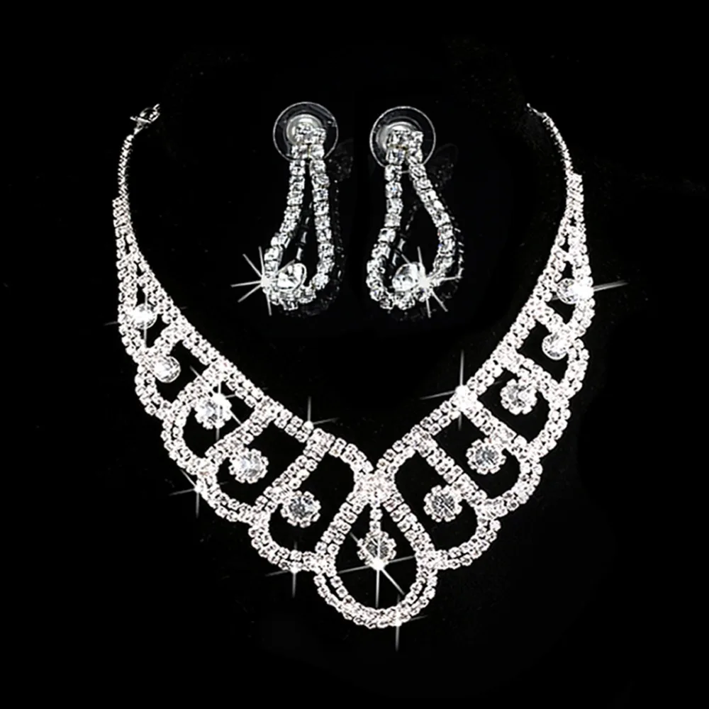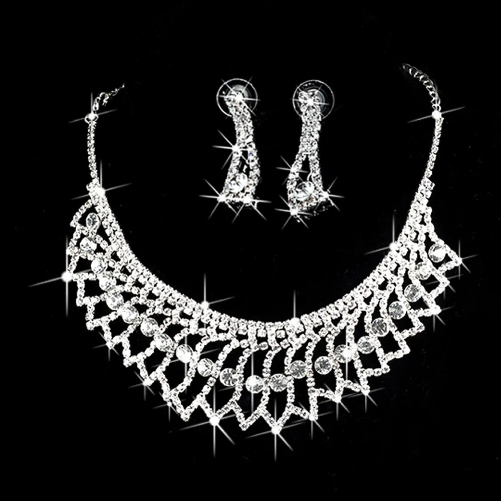 incredible New Fashion Silver Crystal Wedding Bridal Prom Rhinestone Necklace Earrings Jewelry Sets