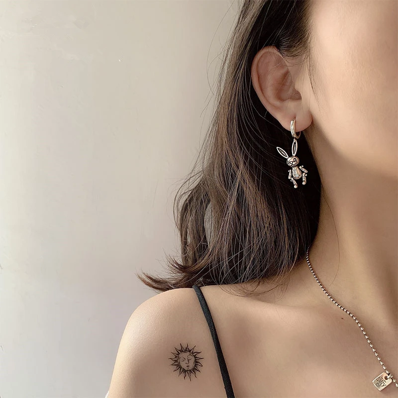 discount HZ 2019 Vintage Rabbit Asymmetry Star Chain Cute Hip Pop Long Geometric Necklace for women Fashion