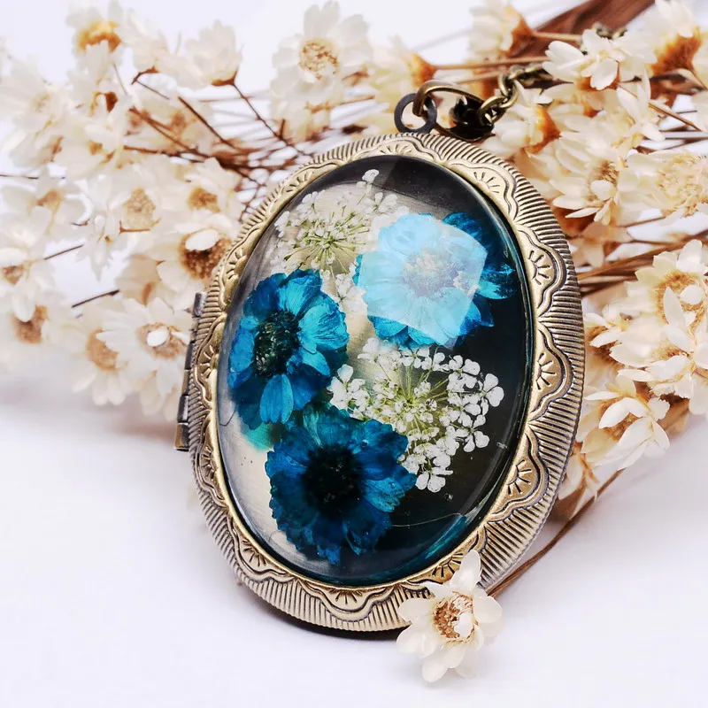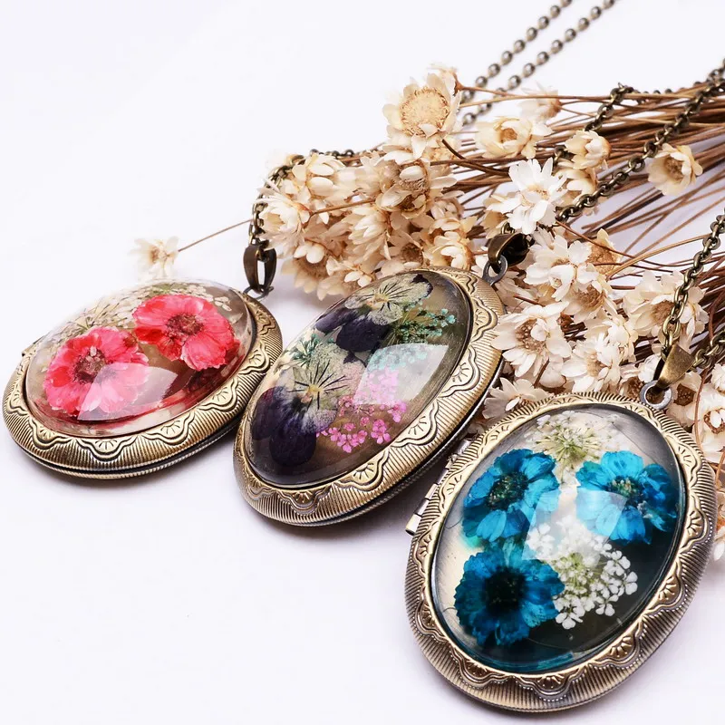 astounding SEDmart Real Dried Pansy Flower Locket Pendant Necklaces Vintage Antique Bronze Plated Long Chain G