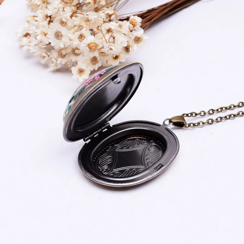 discounted SEDmart Real Dried Pansy Flower Locket Pendant Necklaces Vintage Antique Bronze Plated Long Chain G