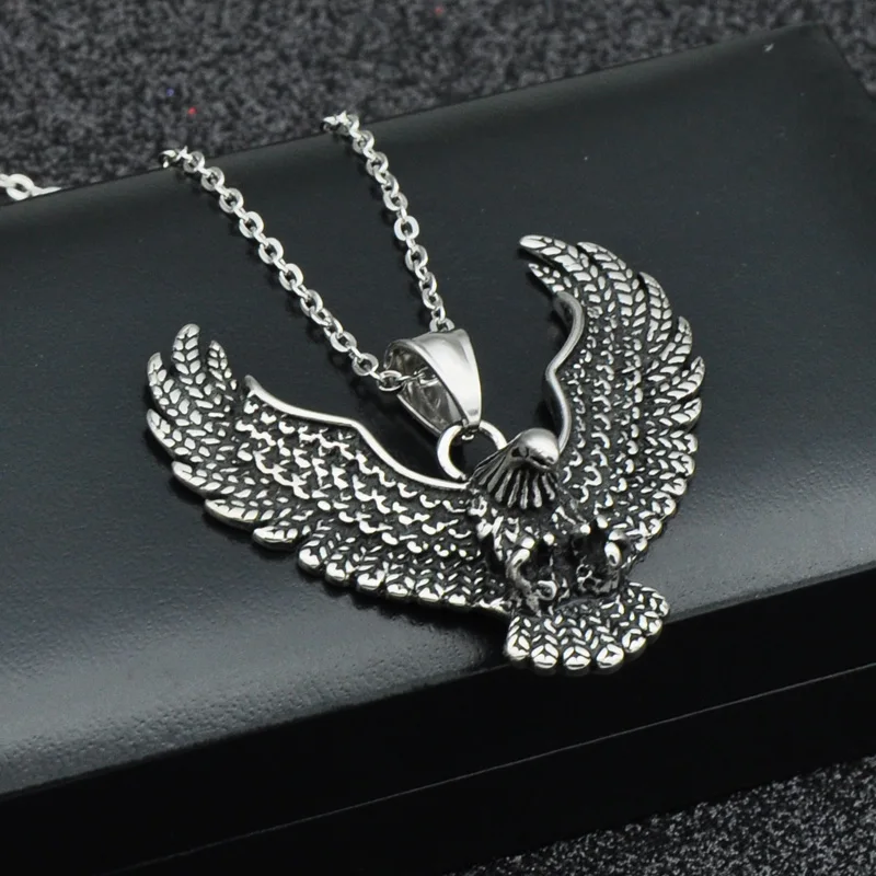price reduction HIP Punk Biker Gold Color Titanium Stainless Steel Animal Eagle Hawk Wing Pendants Necklace for Men