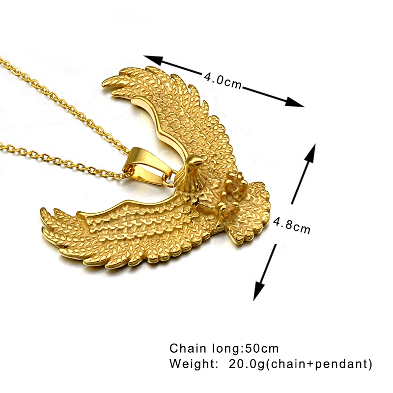 incredible HIP Punk Biker Gold Color Titanium Stainless Steel Animal Eagle Hawk Wing Pendants Necklace for Men