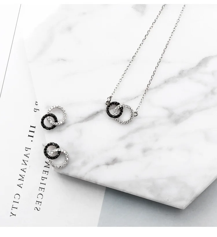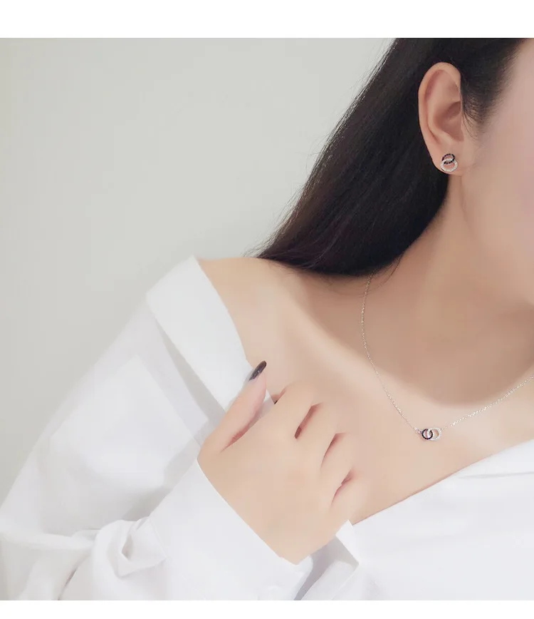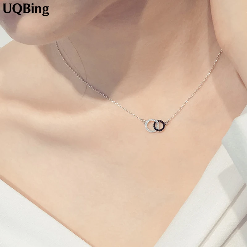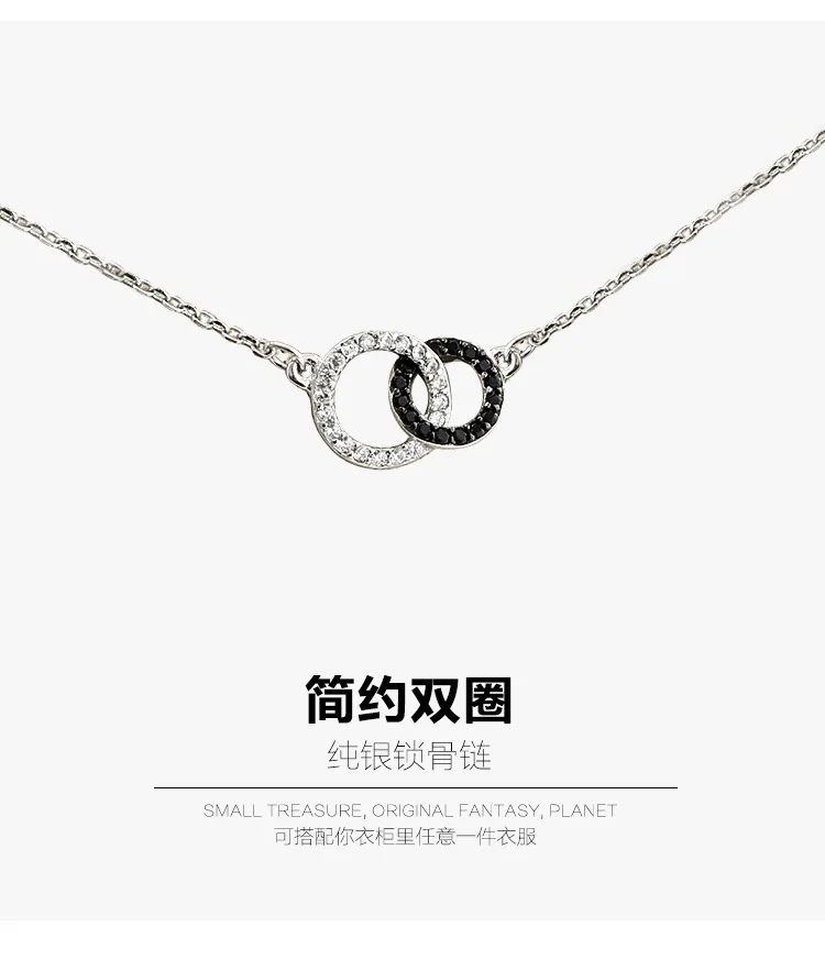 lower price 925 Sterling Silver Necklaces Rhinestone Double Circle Pendant Necklace Jewelry Collar Colar de Pla