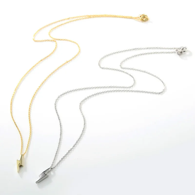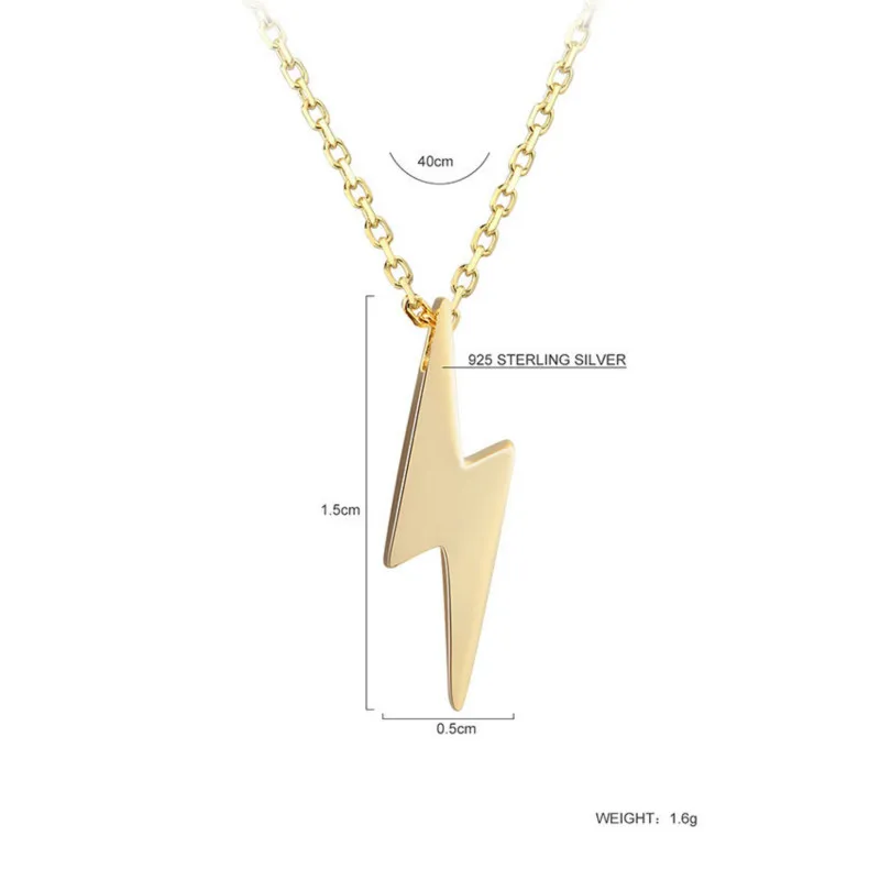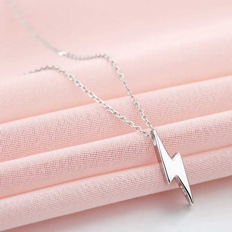 New Fengxiaoling 100% 925 Sterling Silver Simple Smooth Lightning Necklaces & Pendants For Women Fashio