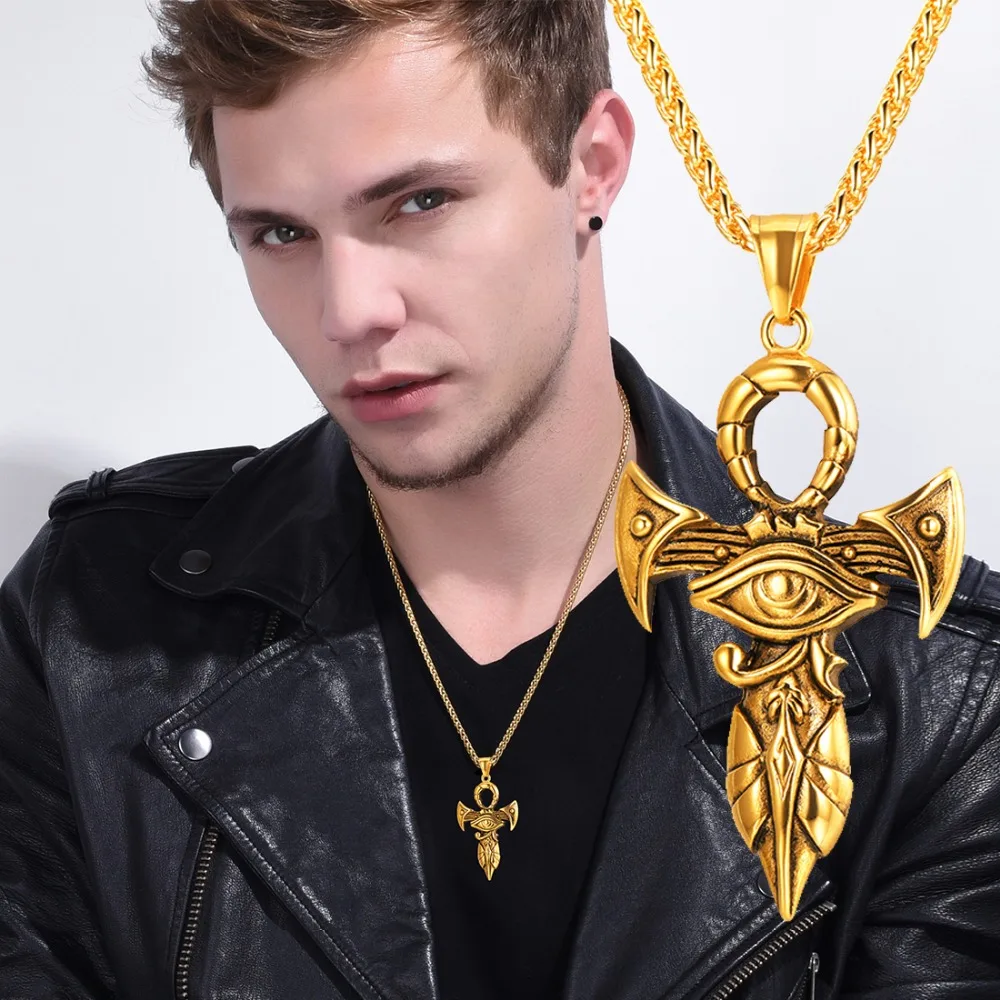 Finest U7 The Eye Of Horus Ankh Necklace Ancient Egyptian Religion Jewelry Gift Unisex Punk Cross Pendant