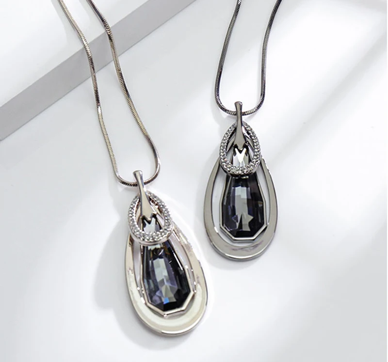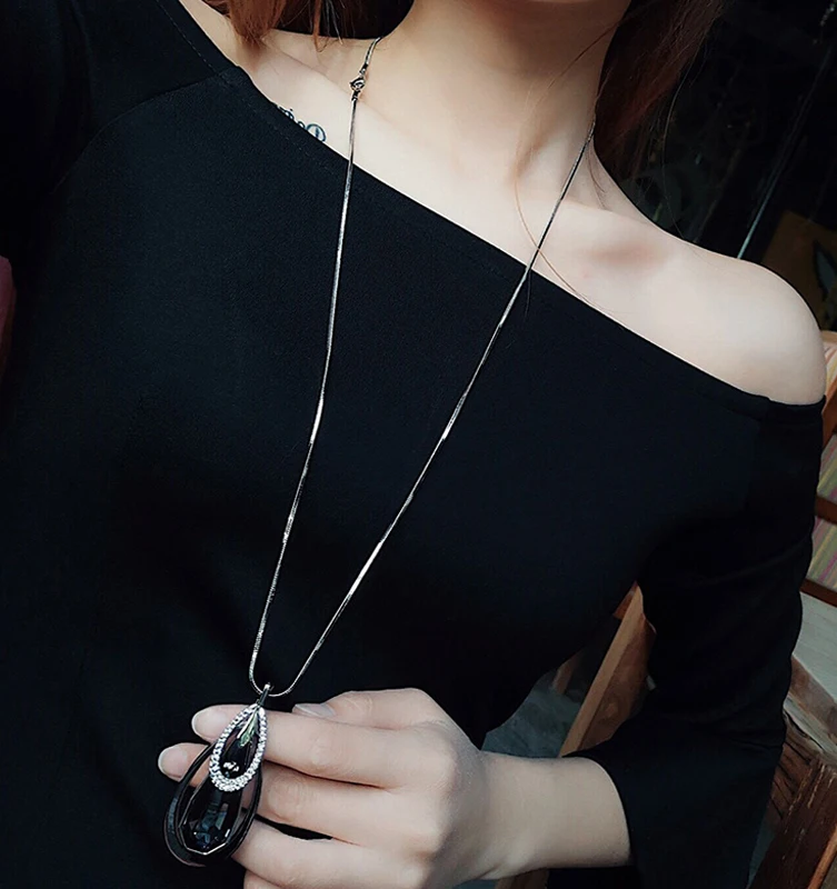 Very best F&U Long Necklace Sweater Chain Two Colors Rhinestones With Waterdrop Design Zinc Alloy Deco Korea