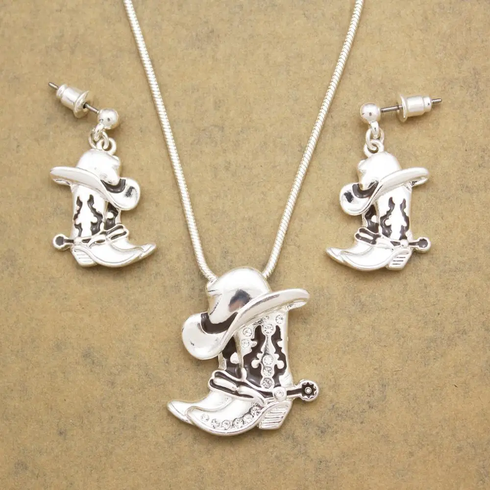 price reduction Lady Western Texas Cowgirl Hat Stetson Boot Pendant Spur Rodeo Snake Link Chain Drop Dangle Earring